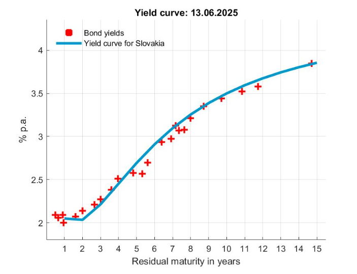 Odhad výnosovej krivky slovenských štátnych dlhopisov. Zdroj: nbs.sk