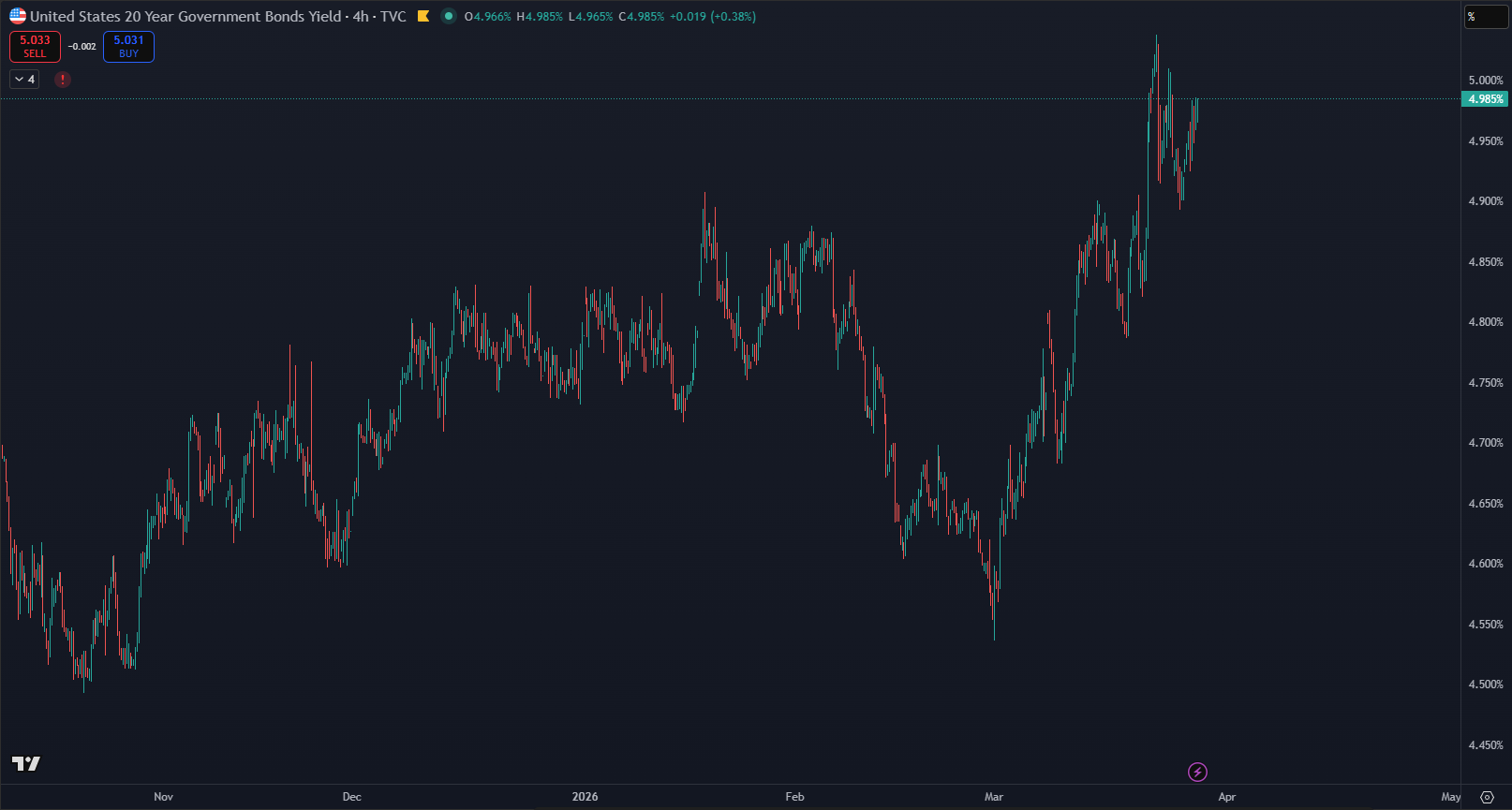 Finančné trhy podľa Coinfomania momentálne zažívajú obdobie zvýšenej volatility. Výnosy z 20-ročných štátnych dlhopisov USA rastú na 5 % napriek správam, ktoré naznačujú možné uvoľnenie medzinárodného napätia. Investori zjavne neveria v okamžité riešenie sporov a do cien radšej započítavajú dlhodobú nestabilitu. Keď tieto výnosy stúpajú, automaticky sa zdražuje požičiavanie peňazí v celej ekonomike. Podnikateľské úvery, spotrebiteľské úvery aj hypotéky stoja zrazu viac peňazí, čo zasahuje peňaženky bežných ľudí.