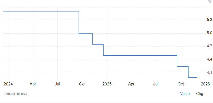 K rozhodnutiu dochádza v čase, keď sa americký trh práce viditeľne ochladzuje. Trhové stávky v súčasnosti predpokladajú ešte dve dodatočné 25-bodové redukcie sadzieb, pravdepodobne v marci a v septembri nasledujúceho roka, uviedol TradingEconomics.