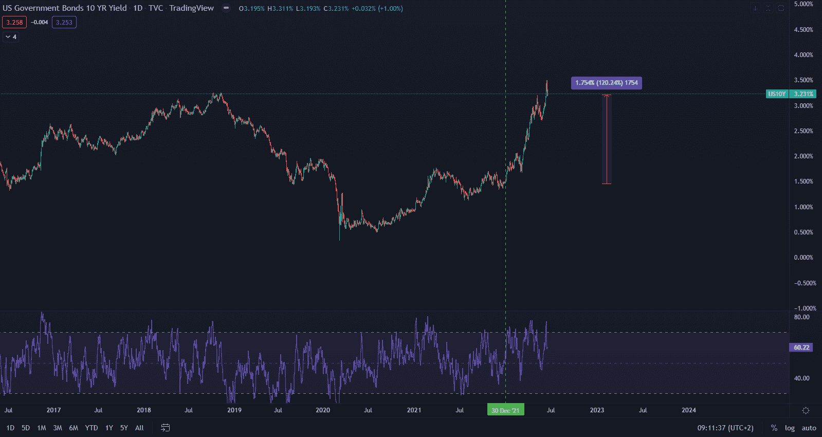 Ako môžeme vidieť, väčšina globálnych trhov utrpela v roku 2022 veľké straty. Najhoršie sú na tom zatiaľ kryptomeny a najlepšie zlato. Výnosnosť amerických dlhopisov síce dlhodobo rastie, no nestačí na rýchlo rastúcu infláciu. Do čoho teda investovať? Určite je dobrou voľbou dlhodobá držba zlata. Následne by portfólio malo obsahovať aj akcie, kde je ideálnou stratégiou DCA z dlhodobého hľadiska v kombinácii s konzervatívnou investíciou v podobe dlhopisov, ktorých výnosnosť rastie.