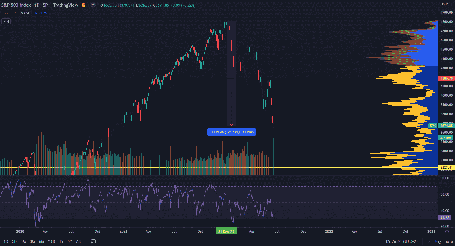 Index S&P 500 od začiatku roka spadol už o 23,60 %, čo je za pol roka dosť vysoký prepad. Ak teda plánujete investovať do krátkodobých investičných produktov s časovým horizontom 2 – 3 roky, môže sa vám to vypomstiť a v takomto prípade sa v časoch vysokej inflácie zdá, že držanie hotovosti je lepšou voľbou. Samozrejme, ak hovoríme o investovaní na aspoň 10 rokov do akcií, výnosnosť jednoznačne predčí držanie hotovosti.