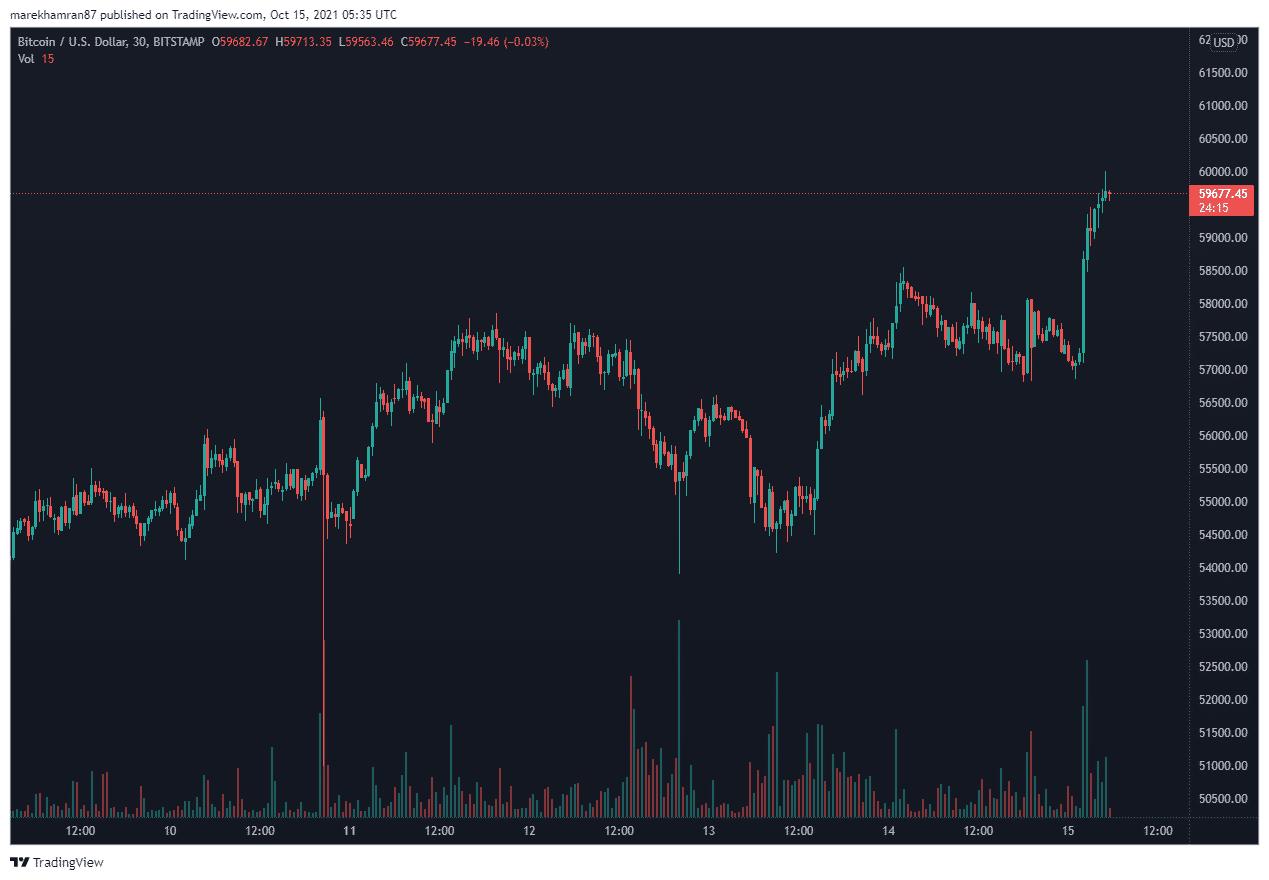 Najväčšia kryptomena prežíva výrazný útok býkov po tom, čo vyplávali na povrch prvé správy, že SEC schválila ETF pre Bitcoin. Je tu konečne to, na čo sa čakalo dlhé mesiace a roky? V čase písania tohto článku sa cena BTC/USD pohybovala na úrovni 59 750 USD, čiže už len krok od historického maxima, ktoré je na úrovni 65 000 USD. O schválení ETF ako prvá informovala agentúra Bloomberg, ale podľa môjho názoru je potrebné si počkať na oficiálne vyhlásenie SEC-u.