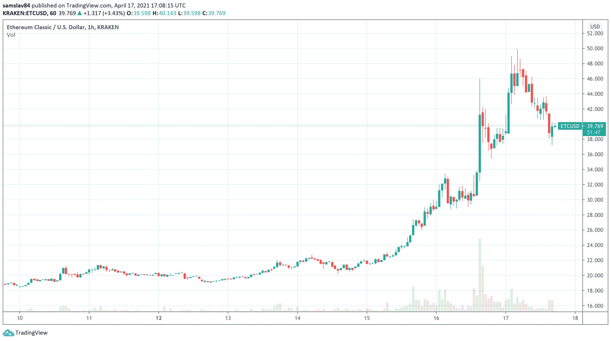 Aj Ethereum Classic ETC má za sebou skvelé dni. Ešte v stredu ste ho mohli nakúpiť za 20 dolárov a dnes predať za takmer päťdesiat. To je zisk 150%!