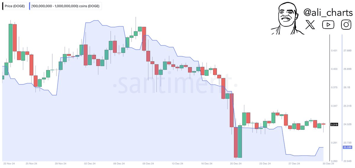 Červená čiara pre súčasný cyklus naznačuje cenový vrchol blízko 23 dolárov v roku 2025, s potenciálnymi vzostupnými trendmi smerom k 36 dolárov. Tieto projekcie sa spoliehajú na schopnosť DOGE udržať kľúčové úrovne podpory a preraziť zóny odporu. Kontinuálne aktualizácie v nákupoch veľkých hráčov a cenových grafoch ukazujú dôveru v túto rastovú trajektóriu. Podporovatelia by mali pozorne sledovať, ako rýchlo sa DOGE približuje k červenej čiare, pretože to označuje kritický bod pre jeho výkonnosť.