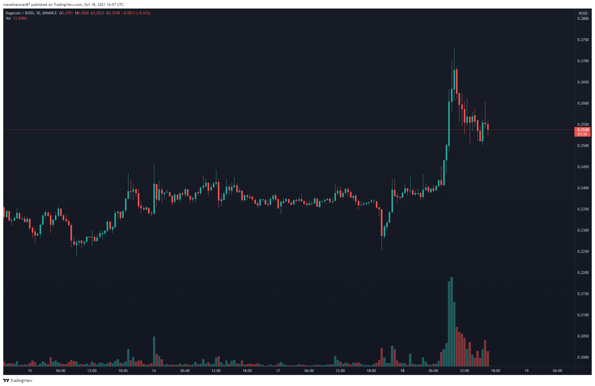DOGE/BUSD 30m TF. Zdroj: TradingView