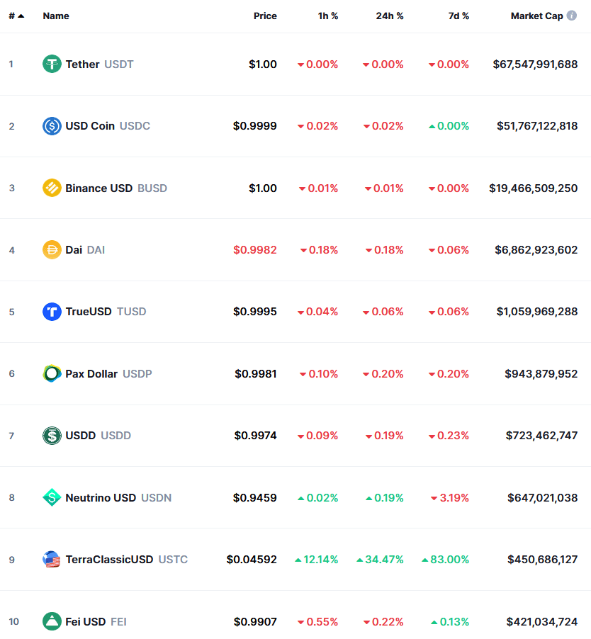 Stablecoin USDC je druhým najväčším a najviac používaným stablecoinom v rámci celého odvetvia kryptomien. Podľa rebríčku celkovej kapitalizácie sa projekt nachádza na 4. mieste s kapitalizáciou takmer 52 miliárd dolárov (51 777 962 242). Stablecoin BUSD burzy Binance sa nachádza na 6. mieste s kapitalizáciou o polovicu nižšou (19 476 711 996).