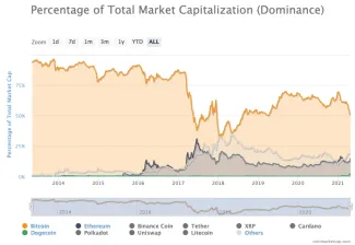 Index dominancie bitcoinu, ktorý identifikuje trhovú kapitalizáciu BTC v porovnaní so zvyškom trhu dosiahol podľa CoinMarketCap 22.apríla minimum 49,35%. Začiatok roka 2021 predstavoval index dominancie BTC hodnotu 70,68%.