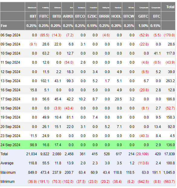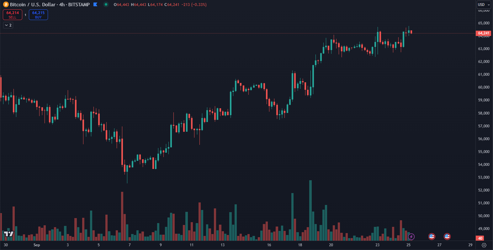Najväčší podiel prílevov, ako sa očakávalo, pripadol na bitcoinové ETF s celkovou sumou 284 miliónov dolárov. Tieto čísla potvrdzujú rastúci záujem investorov o kryptomenové produkty, najmä tie spojené s Bitcoinom. Bitcoin sa v čase písania článku obchoduje tesne nad hranicou 64 000 dolárov, čo predstavuje nárast o viac ako 25 % od rozhodnutia Federálneho výboru pre voľný trh (FOMC) o znížení úrokových sadzieb v predchádzajúcom týždni.