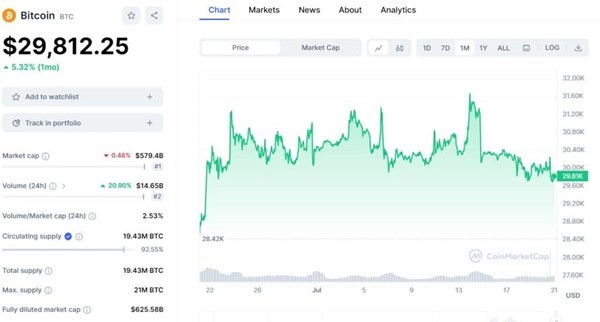Bitcoin je tesne pod 30 000 dolárov. Zdroj: coinmarketcap.com