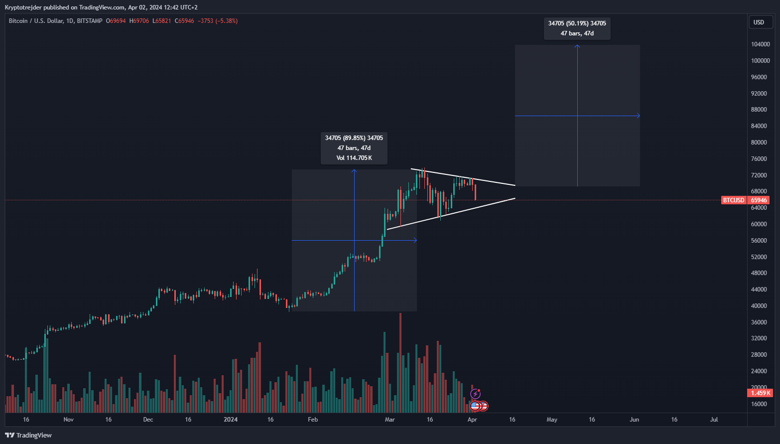 Bitcoin sa pripravuje na masívny vzostup, ktorý by mal nastať po súčasnej korekcii. Dopyt po spotových ETF a blížiaci sa halving sú hlavnými katalyzátormi tejto predpovede. Zároveň by mal byť každý obchodník pripravený na oba scenáre a nenakupovať na jedinej cenovej hladine. Ak sa Bitcoinu podarí prekonať poslednú rezistenciu na hladine 71 300 dolárov, zrejme budeme svedkami ďalšej vlny bullrunu.