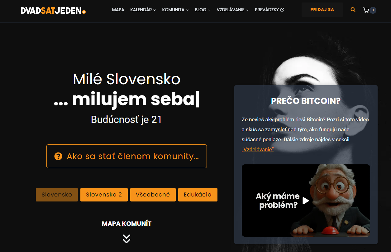 Bitcoin je na vzostupe a stáva sa nie len investičným aktívom, ale postupne aj súčasťou životného štýlu. Na Slovensku sa postupne rozvíja fenomén, ktorý má šancu úplne zmeniť spôsob, akým vnímame Bitcoin (BTC), decentralizáciu a osobnú slobodu. Iniciatíva Dvadsaťjeden je pomenovaná podľa maximálneho počtu Bitcoinov, ktoré kedy vzniknú (21 miliónov). Ide o jednu z najväčších a najaktívnejších bitcoinových aktivít na svete. Tento projekt sa zameriava na vzdelávanie, budovanie komunity a podporu reálneho používania Bitcoinu v každodennom živote.