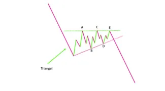 Klesajúci triangel sa najčastejšie objavuje v druhej a štvrtej vlne. Môže sa objaviť aj v korekčnej vlne B. Má štruktúru 3-3-3-3-3. Každá z vĺn v triangli musí byť kratšia ako predchádzajúca. Vytvára supportnú úroveň, od ktorej sa cena niekoľkokrát odrazí. Target meriame podľa dĺžky 1. vlny, priložením na koniec triangla.