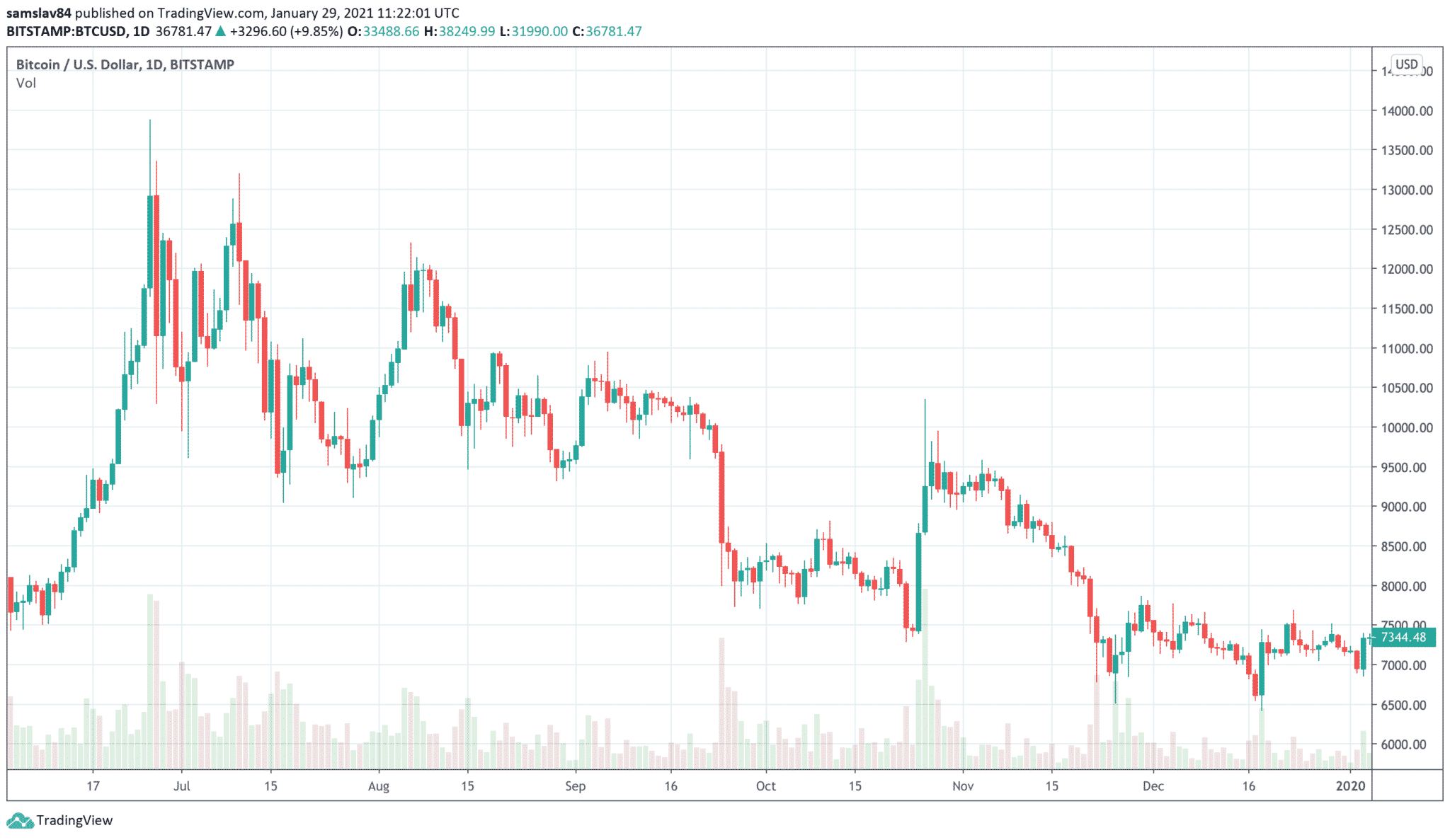 Ako tento pohyb Bitcoinu ovplyvní ďalší vývoj trhu? Ja osobne tipujem, že nijak. Ako môžete vidieť, nešli sme zas tak vysoko. Bitcoin sa vyššie obchodovať aj pred týždňom. Je síce možné, že Elon vdýchol do trhu novú vlnu optimizmu, ale skôr to vidím na opakovanie situácie z jesene 2019, keď Bitcoin po 40% pumpe prekonal 10 000 $, no potom aj tak pokračoval v nastolenej klesajúcej trajektórii.