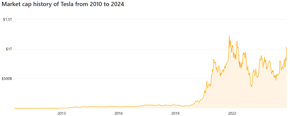 - Tesla prekročila hodnotu 1 bilión dolárov prvýkrát od roku 2022.
