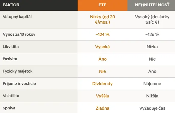 Pre koho ETF a pre koho nehnuteľnosť — porovnanie investičných aktív
