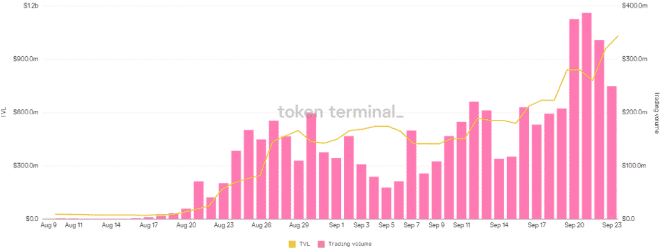 Od airdropu sa TVL na dYdX zvýšila zo 422 miliónov na 554 miliónov dolárov. Jeho 24-hodinový objem sa vyšplhal zo 700 miliónov dolárov až na 2,4 miliardy dolárov.