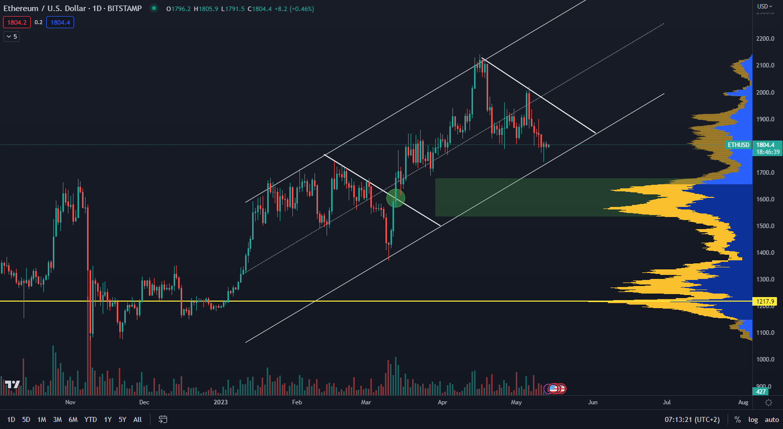 Transakčné objemy ukazujú, že najsilnejšia oblasť obratu sa nachádza na cenovom intervale od 1 500 do 1 700 dolárov, čo by mohlo znamenať, že cena môže sformovať minimum aj v tejto oblasti. Medzitým sa cena nachádza v pokračujúcom rastúcom trende z dlhodobého hľadiska a nedávno sme vám dokonca priniesli analýzu, podľa ktorej by ethereum mohlo dosiahnuť až 5 000 dolárov do konca roka.
