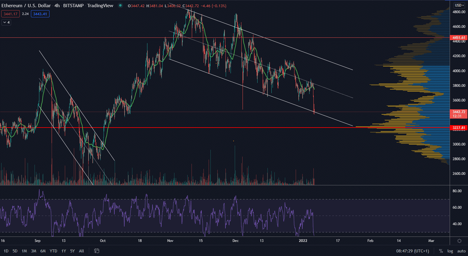 Ethereum nie je výnimkou a taktiež za posledný deň vytvorilo korekčný leg. Pokračovanie dna korekcie tak stále prebieha a trhová cena sa nachádza v oblasti supportu býčej vlajky, ktorá je platná už od začiatku novembra. Poďme sa teda pozrieť, kde sa nachádzajú významné hladiny supportu a rezistencie.