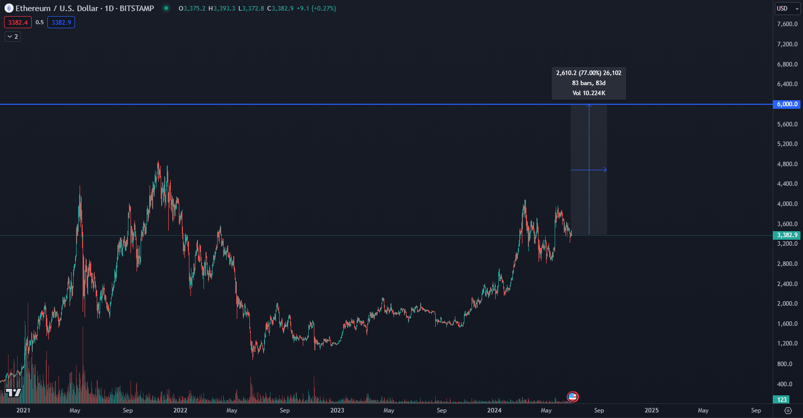 Ethereum údajne smeruje na 6 000 dolárov