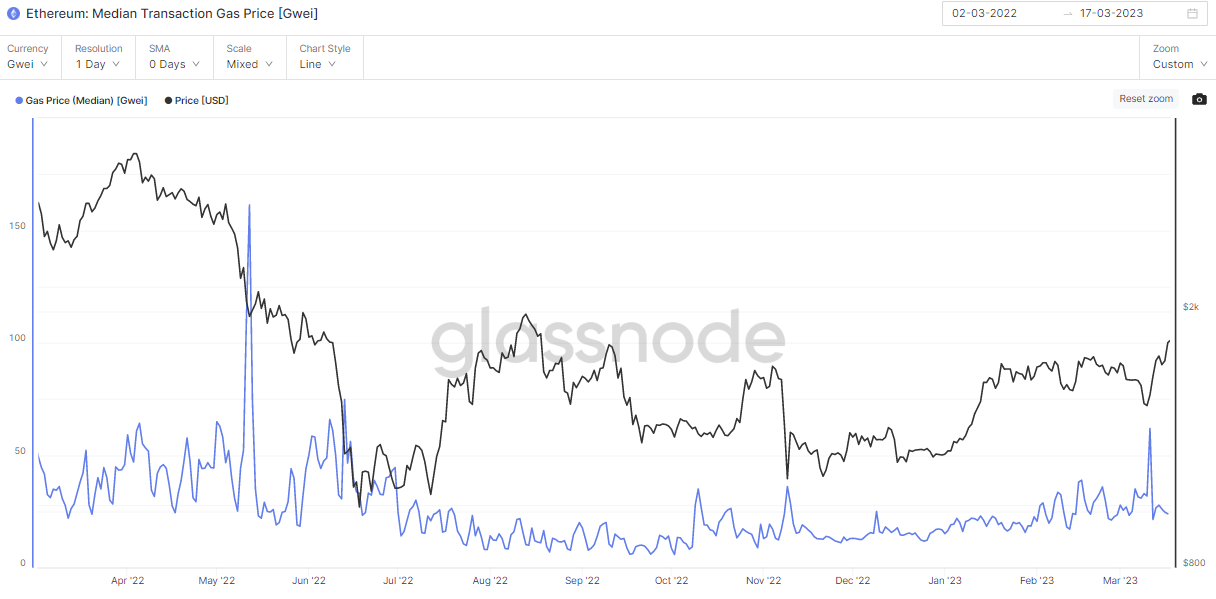 Ethereum: transakčné poplatky. Zdroj: Glassnode