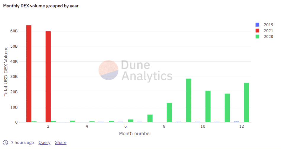 DEX už v prvých dvoch mesiacoch roku 2021 spracoval väčší objem ako počas všetkých predchádzajúcich rokov dohromady.