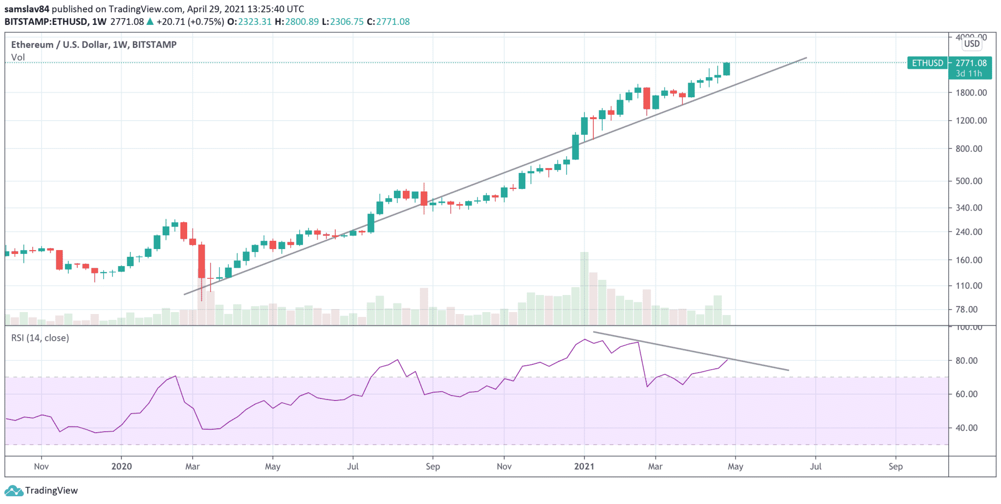Ethereum na novom historickom maxime a nepríjemná RSI divergencia