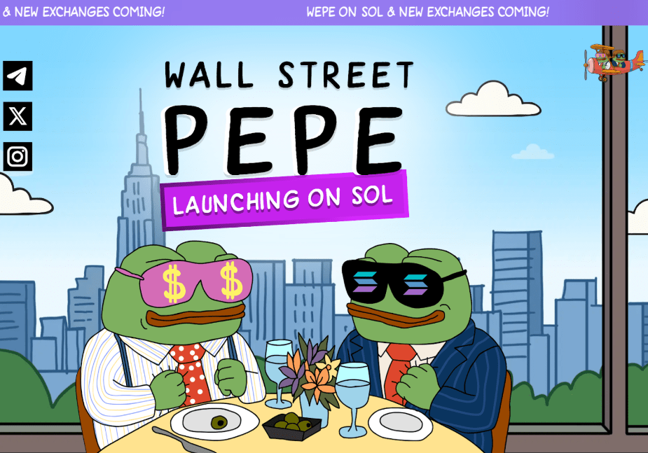 Wall Street Pepe (WEPE) využíva hlavného maskota žabiaka Pepeho, ktorým sa zaraďuje do rodiny žabích meme coinov s trhovou hodnotou viac ako 5 miliárd dolárov. Tento token je postavený na Ethereu so štandardom ERC-20 a nedávno oznámil aj svoje rozšírenie na sieť Solana. Týmto krokom sa WEPE stáva moderným multichainovým projektom, ktorý používateľom prináša rýchlejšie transakcie, nižšie poplatky a širšie komunitné využitie.