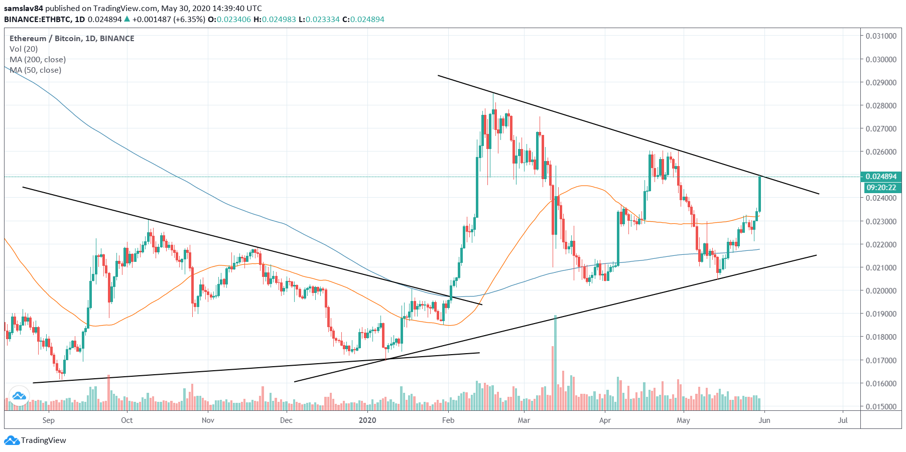 Zdá sa, že kryptomeny prenechali po halvingu prvé miesto akciám, ktoré za posledné týždne aj napriek kríze vytvorili niekoľko vyšších vrcholov. Trh s kryptomenami sa za ten čas stabilizoval a je tu jeden coin, ktorý v poslednej dobe púta veľa pozornosti. Je ním staré dobré Ethereum, ktoré za tento týždeň spravilo zisk 15% a z ceny 200 $ sa dostalo na súčasných 235 $.