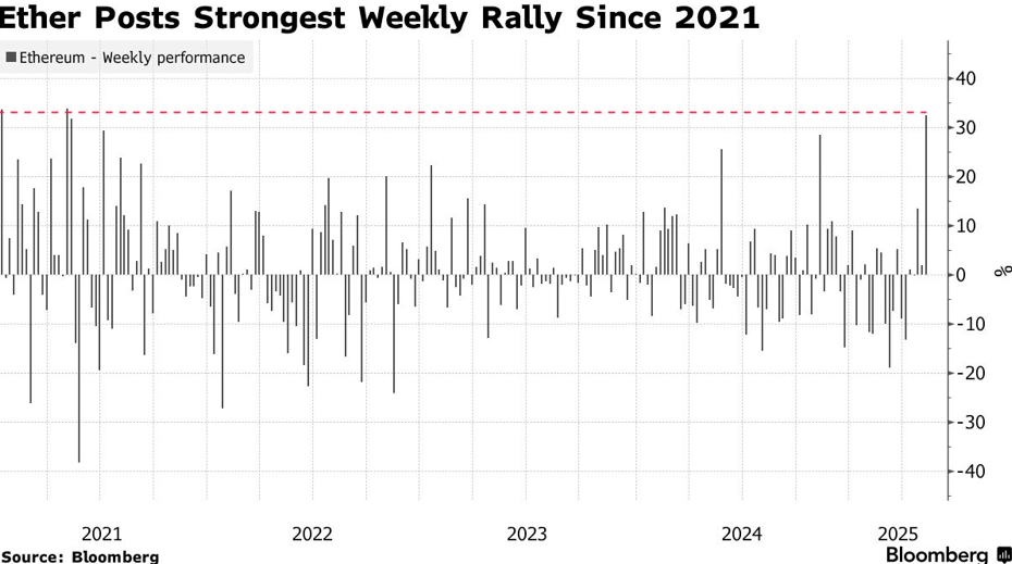 V posledných mesiacoch sa situácia začala meniť. Od aprílových lokálnych miním zaznamenalo Ethereum rast o viac ako 150 %. A nielen to – počas minulého týždňa pridalo približne 33 %, čo je jeho najväčší týždenný nárast od roku 2021. Pre mnohých investorov to bol signál, že Ethereum opäť vstupuje do hry.