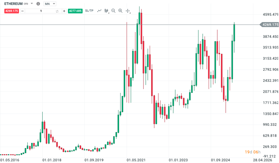 Ethereum, druhá najväčšia kryptomena sveta, však po svojom historickom maxime na konci roka 2021, keď sa obchodovalo okolo 4 800 dolárov, zostávala v úzadí. Kým Bitcoin písal nové rekordy, Ethereum skôr šliapalo na mieste. Až donedávna.