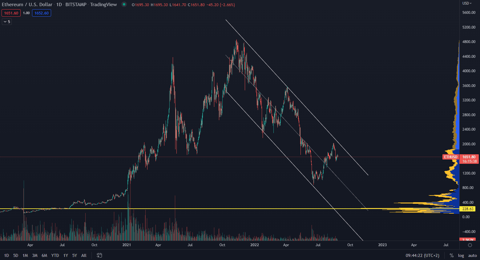 Blížiaca sa aktualizácia The Merge je už pravdepodobne obsiahnutá v cene. Keď sa zverejnil približný dátum udalosti, obchodníci reagovali nákupmi, čo spôsobilo rast ceny. To znamená, že nakupujúci svoju chamtivosť na cene už prejavili. Z dlhodobého hľadiska však aktualizácia môže vystreliť cenu ETH smerom nahor.