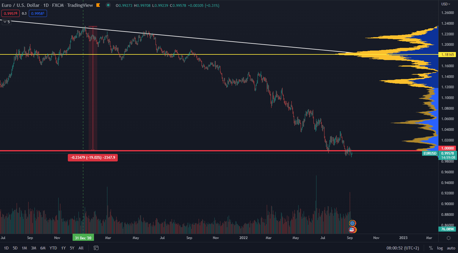 Euro je najslabšie za 20 rokov. Zdroj: TradingView