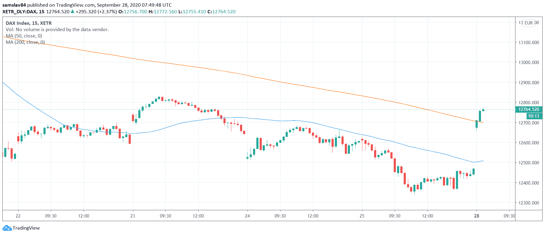 Európske akciové trhy sa dnes zobudili do pekného, zeleného rána. Vtáčiky spievajú, kávovary melú kávu a nemecký DAX otvoril o 200 bodov vyššie než zavrel na konci minulého týždňa. A to nie je všetko. V radte pokračoval aj po začatí obchodovania a aktuálne už pridal ďalších 100 bodov. V čase písania tohto článku sme tak zaznamenali 2,5% zisk a to pravdepodobne nie je všetko.