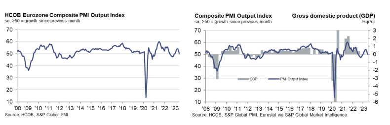 Podnikateľská dôvera klesla na ročné minimum, keďže inflácia je stále vysoká. Na základe výrobného indexu PMI za mesiac jún, ekonomika eurozóny zaznamenala stagnáciu na úrovni 49,9 bodov (hodnota pod 50 bodov predstavuje pokles). Medzimesačne ide o pokles z hodnoty 52,8 bodov za mesiac máj a z hodnoty 54,1 bodov za mesiac apríl.