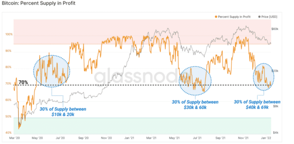Bitcoinoví (BTC) hodleri čelia kľúčovému týždňu z viacerých hľadísk. Ako v pondelok poznamenala analytická firma Glassnode, 30 % ponuky BTC je teraz v strate. Historicky to bolo kľúčové číslo, ktoré by mali býci brániť.