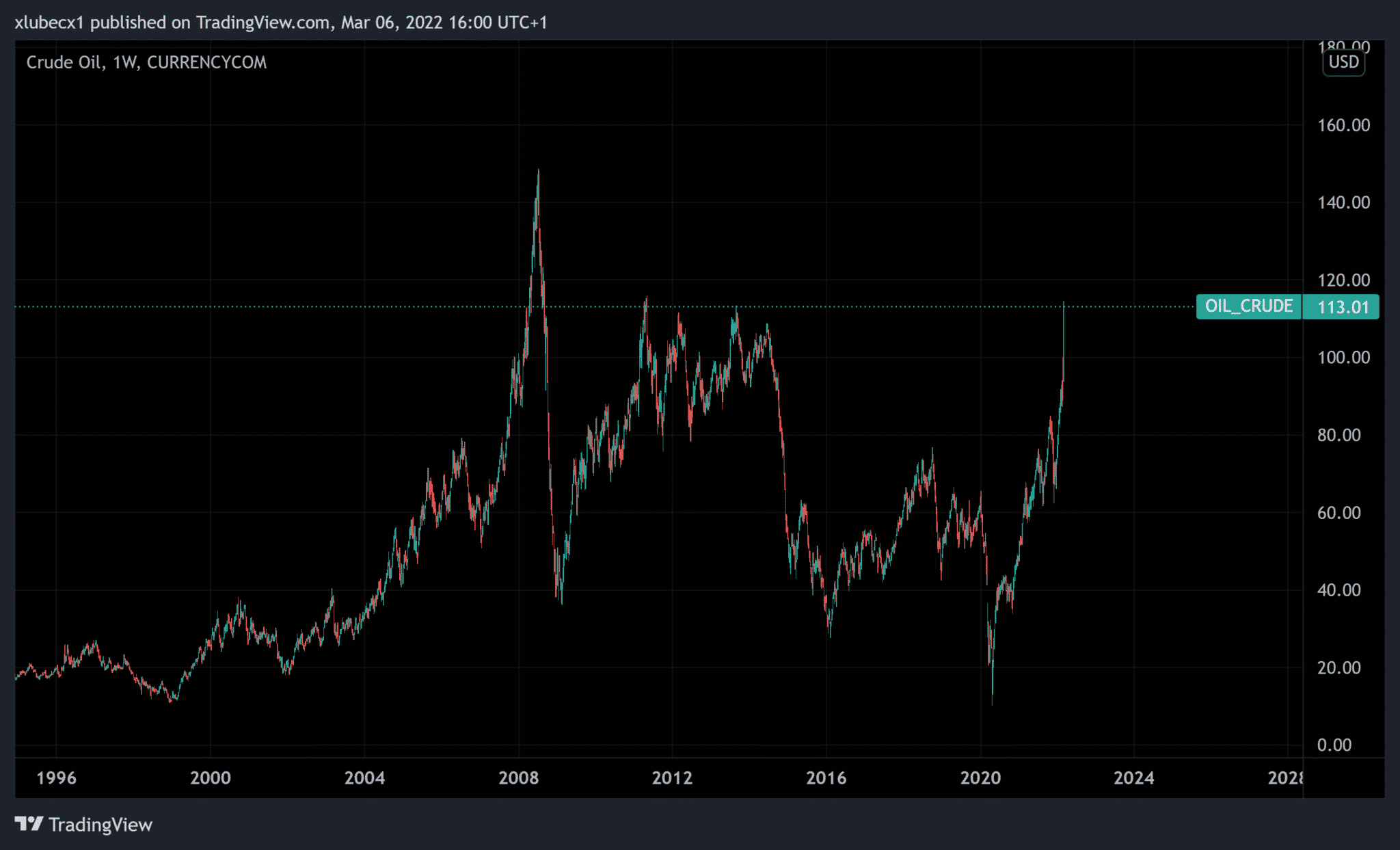 Cena ropy počas piatkového obchodovania dorovnala 12-ročné maximum z roku 2010, keď sa naposledy obchodovala za 115 dolárov za jeden barel. Od historického maxima má ešte ďaleko. Nedá sa ale vylúčiť, že tento rok znovu uvidíme ropu na 150 dolároch.