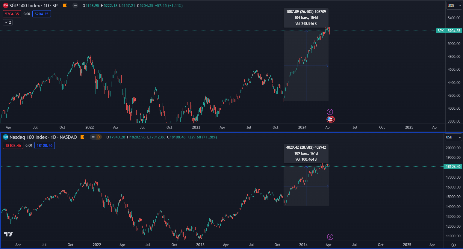 Vysoké tempo zhodnocovania globálnych aktív sme mohli zaznamenať od októbra 2023. Najznámejší akciový index S&P 500 za toto obdobie stúpol o 26 %, Nasdaq dokonca až o 29 %. Prekvapením je určite zlato, ktoré dokázalo držať krok s akciovým trhom a jeho cena narástla o 28 % len za pol roka.