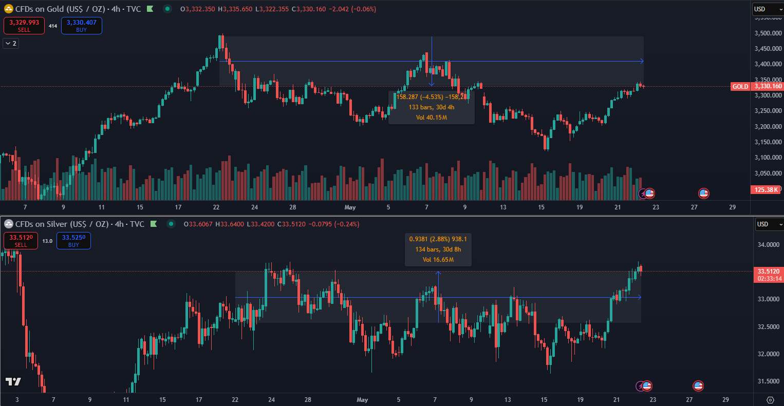 - Striebro, hoci je tiež cenným kovom, je silnejšie ovplyvnené priemyselným dopytom, ktorý zatiaľ nevykazuje výraznejší rast. Preto zlato zostáva preferovanou investíciou v súčasnom ekonomickom prostredí.