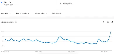 Cesta Bitcoinu na prekonanie hranice 8 000 dolárov za jeden BTC aj tento raz priviedla množstvo ľudí k využívaniu vyhľadávača Google na zisťovanie informácií o BTC a ďalších kryptomenách. Aktuálne štatistické údaje poukazujú, že vyhľadávanosť slova Bitcoin je najvyššia od decembra 2019.