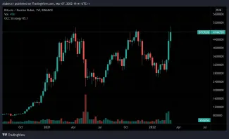 Vojnová situácia na východe spôsobila pokles ruského rubľa na historické minimum. V dôsledku toho sa cena Bitcoinu v Rusku dostala na historické maximum. Objemy na nákup najväčšej kryptomeny sú naďalej vysoké, čo naznačuje, že Rusi majú veľký záujem nakupovať Bitcoin.