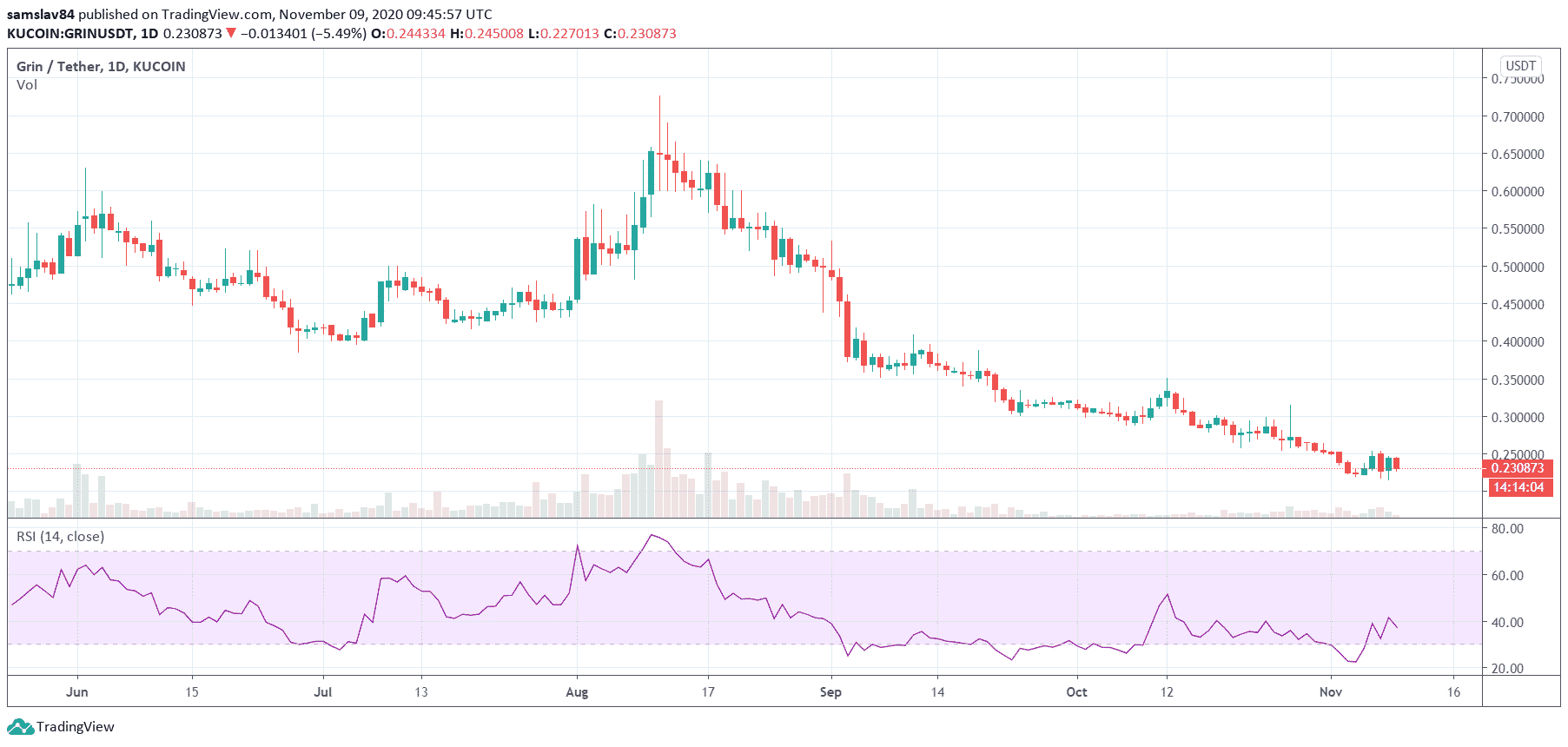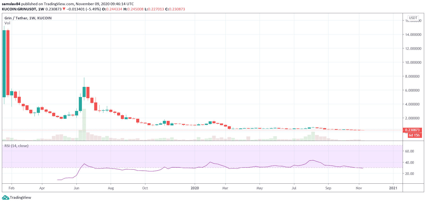 Hodnota kryptomeny GRIN sa zatiaľ drží a neklesá. I keď, o moc nižšie už ani klesnúť nemôže. Ide totiž o umierajúci shitcoin, ktorý po prvotnom hype už nič nedokázal. Klasický exit scam.