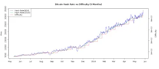 Je to Hash Rate, ktorý kontinuálne rastie. Pozrite si nasledujúci graf: