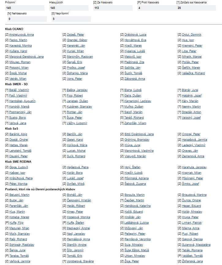Peter Cmorej na súčasnej schôdzi opäť predložil návrh, za ktorý nakoniec hlasovalo až 113 poslancov. Zdržali sa alebo hlasovali proti iba poslanci okolo Tarabu a SMER – SSD.