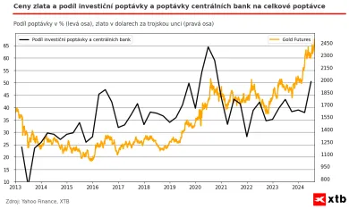 Na prvý pohľad rast ceny zlata nemusí dávať úplne zmysel, faktorov podporujúcich rast ceny totiž nebolo veľa. Negatívny vplyv na cenu mal mať rast úrokových sadzieb od roku 2022, ktorý, ako je obvyklé, zatraktívnil iné relatívne bezrizikové aktívum, a to americké štátne dlhopisy. Hodnota doláru mala na cenu zlata skôr neutrálny vplyv, pretože sa nachádza presne tam, kde sme ju videli na začiatku roka. Napriek tomu ceny zlata naďalej rástli. V poslednej dobe sa tiež drobní investori začali obzerať po rizikovejších aktívach a sťahovať svoj kapitál zo zlatých ETF, čo by malo mať opäť negatívny vplyv na ceny zlata.