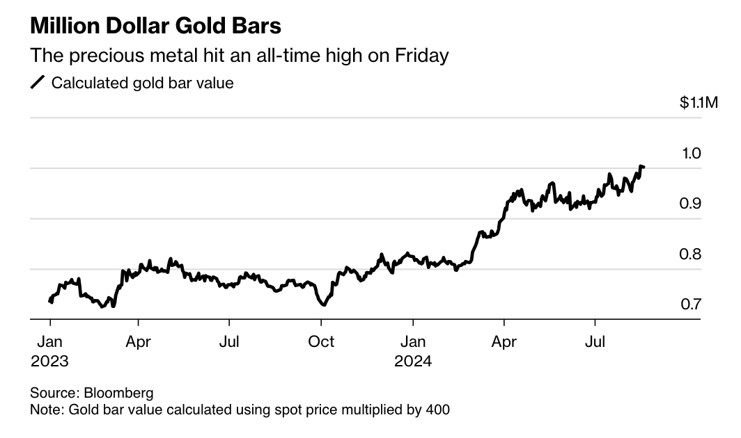 Je dôležité povedať, že 2 500 USD za uncu nie je iba okrúhle číslo, ide o vcelku historický míľnik, pretože vďaka tomu má prvýkrát v histórii štandardná zlatá zliatina s hmotnosťou 400 uncí hodnotu 1 milióna USD (obrázok). Poďme sa teda pozrieť, čo hnalo cenu zlata nahor a či ešte má priestor na rast.