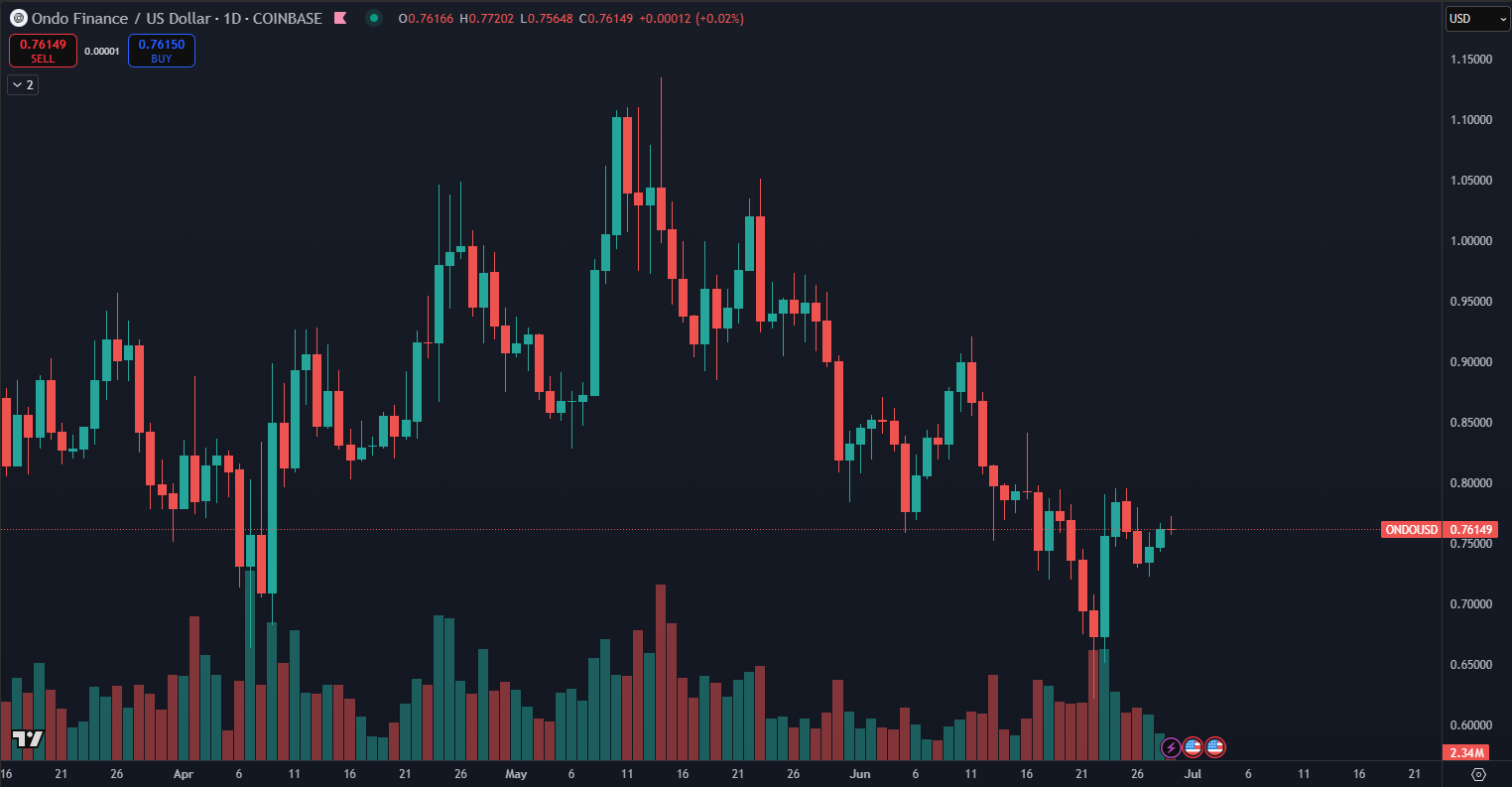 Cena kryptomeny ONDO. Zdroj: tradingview.com