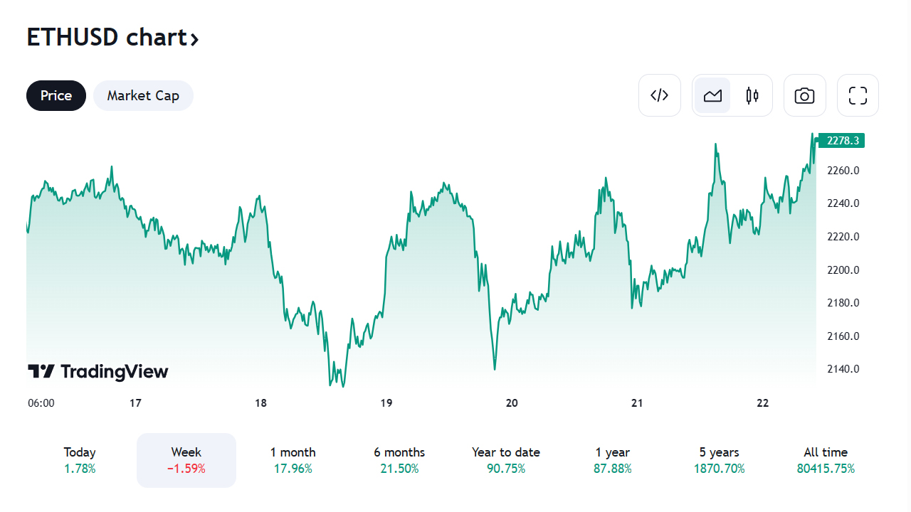 Súčasná dynamika trhu vedie analytikov k predpovediam potenciálneho rastu, pričom cieľové ceny sa pohybujú v rozmedzí 2 500 až 2 700 dolárov. Tento optimizmus podporujú pozorované odlevy z burzy a záujem širšieho trhu o Ethereum.