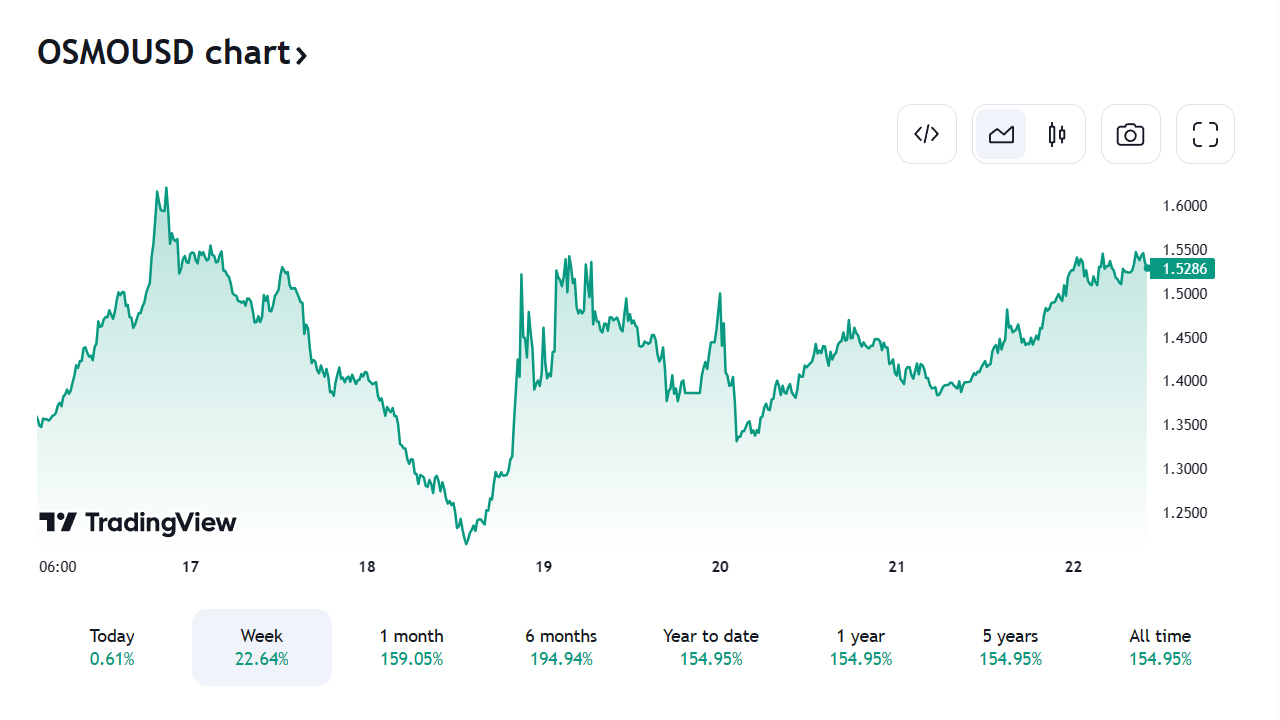 Osmosis nedávno zaznamenal výrazný rast, pričom jeho cena vzrástla o 143 %. To prichádza po období klesajúcich trendov počas väčšiny roka, čo naznačuje potenciálnu zmenu nálady na trhu voči Osmosis.