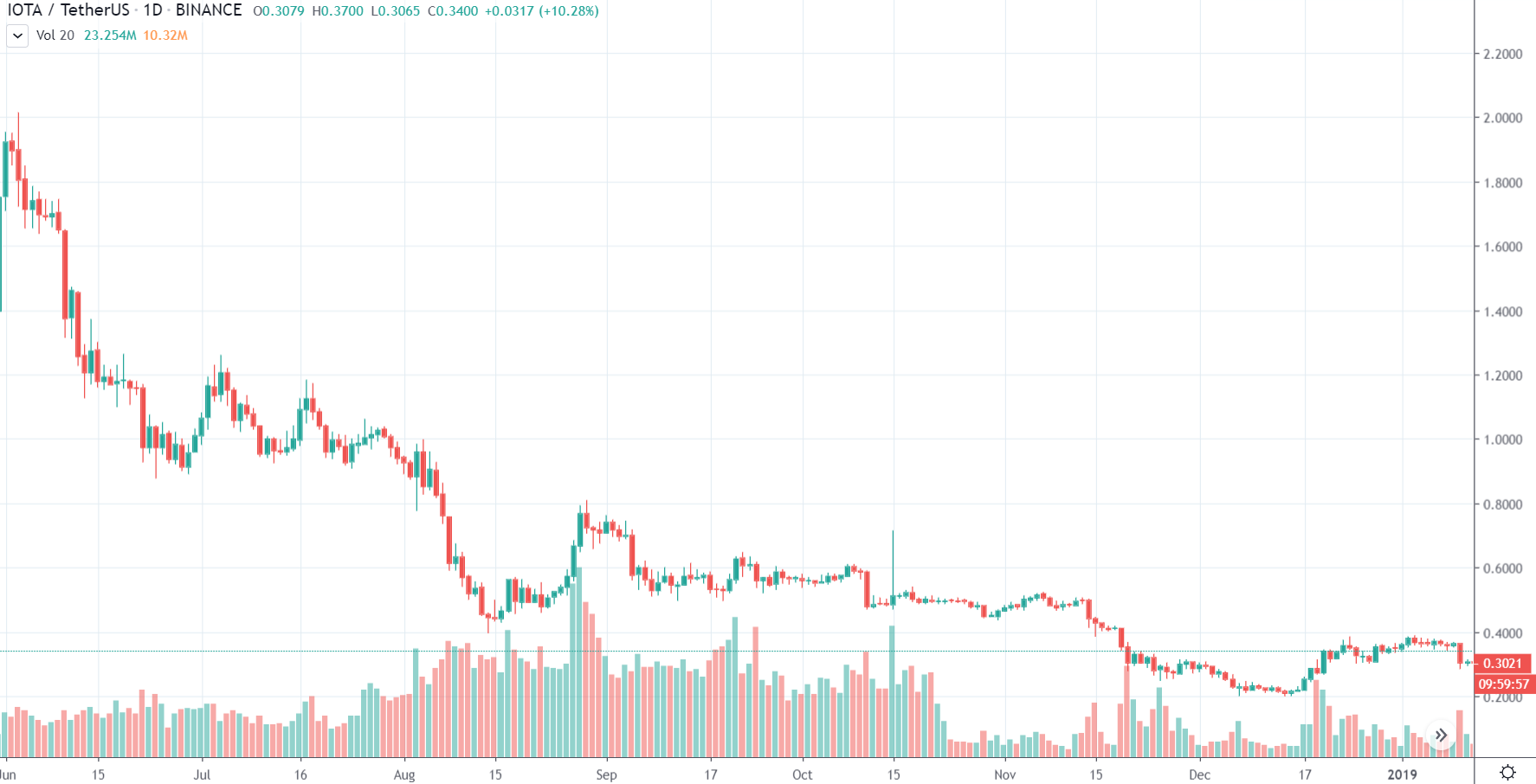 Interné konflikty vrámci IOTA Foundation vtedy spôsobilo obrovský prepad hodnoty tejto kryptomeny. Z 2,3$ v júni 2018 prišiel dump až na 22 centov. Aktuálne sa obchoduje za 34 centov.