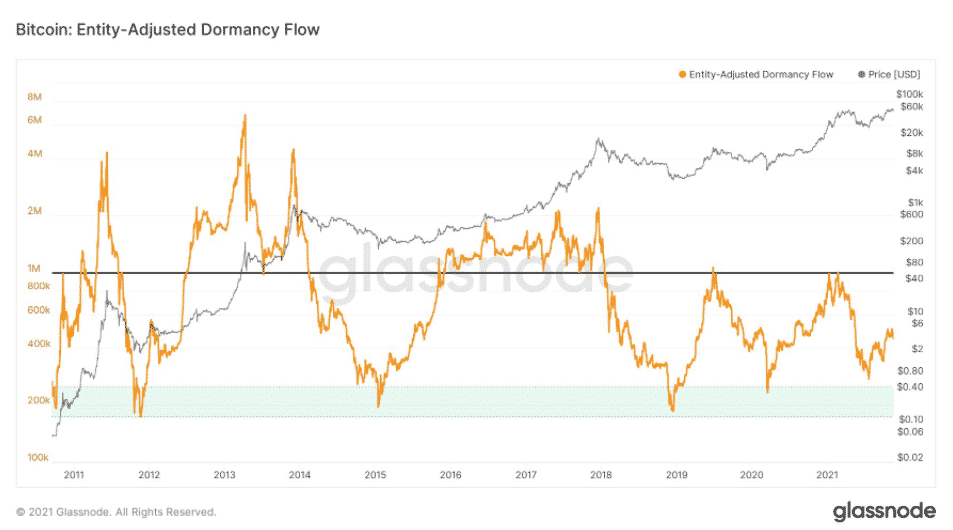 Údaje podčiarkujú teóriu, že len málo vlastníkov Bitcoinu má v úmysle predávať za súčasné ceny, aj keď sú blízko historického maxima. Distribúcia mincí dlhodobými držiteľmi však nedávno začala. Naposledy sa tak stalo v novembri minulého roka, po čom cena raketovo rástla.